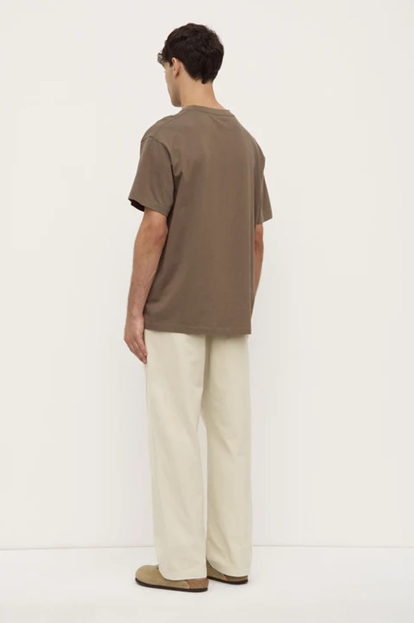 An update of the classic men's tee. Designed for a relaxed and boxy fit, the Kit tee is crafted from a soft midweight cotton and features a ribbed neckline, with stitch detailing on the sleeves and hem.